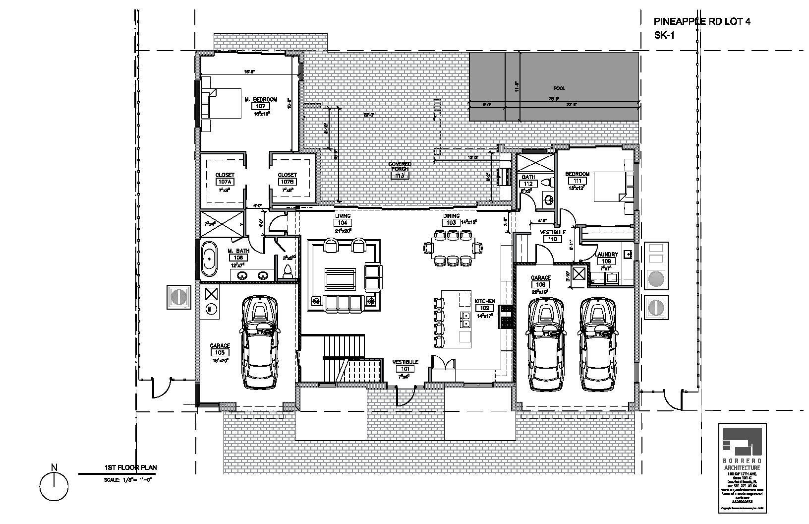 A beautiful backyard with a pool and glass sliders allows you to fully enjoy the Florida lifestyle. 3.5 car garage with room for everything. Pineapple road is a brand new road of six luxury homes. This unique collection signifies Marc Julien Homes' ongoing commitment to building sustainable, luxury communities defined by exceptional craftsmanship and refreshing architectural beauty.