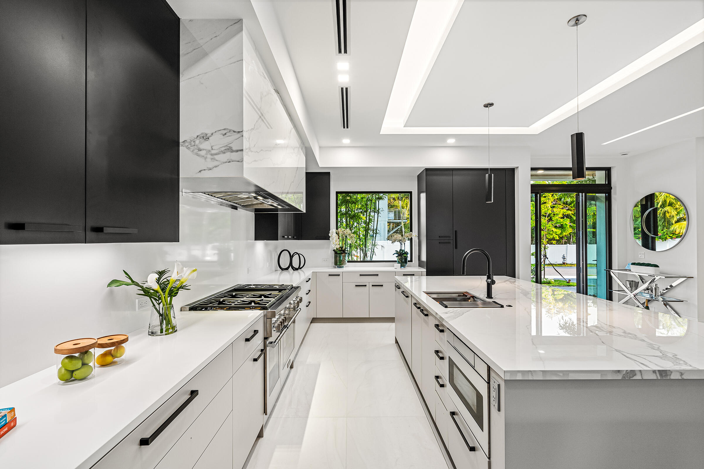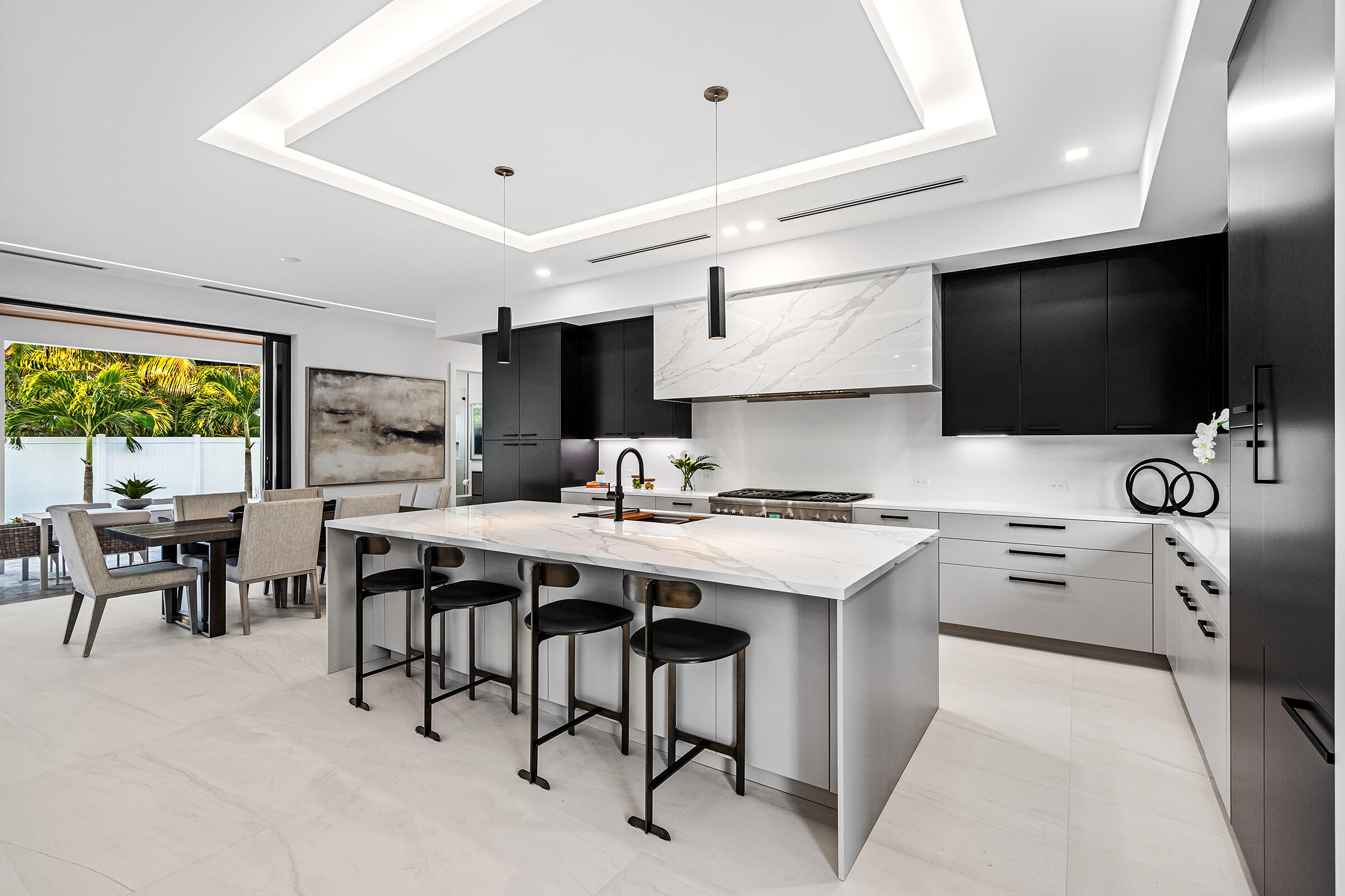 Discover 140 Pineapple Road . This inspired Coastal Contemporary home is the newest creation by builder Marc Julien and award-winning architect Alejandro Borrero. Featuring a two-story design and crisp and clean contemporary styling that creates sophisticated living spaces. The open-concept living area ensures proper flow throughout. Natural light washes through the home through sliding glass doors and soaring windows. Furniture Not included 1.5% Builders fee Entertainers will delight in the chef's kitchen, featuring a full Thermador appliance package. His and her closets and a large master bath are the centerpieces of the spacious master suite on the first floor. Three additional bedrooms serve the specific needs of the homeowner. Time spent outdoors will never be the same with the saltwater pool