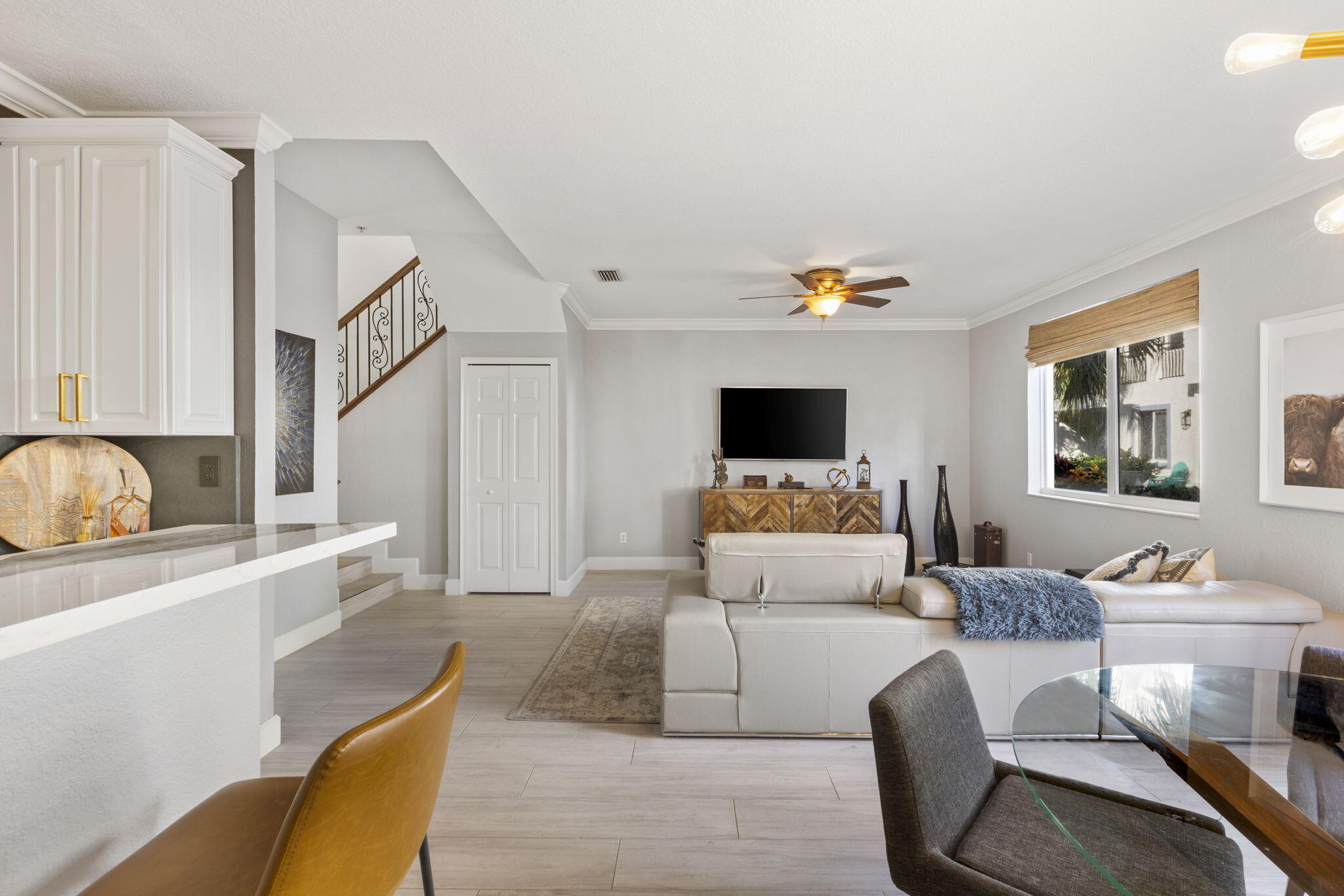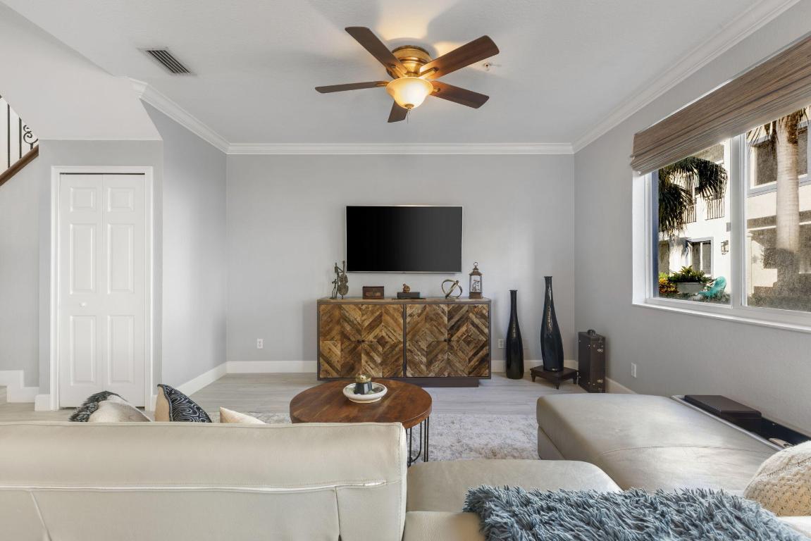 A tropical oasis, 3046 Waterside is a bright corner unit situated yards from the intracoastal. A spacious main bedroom is accompanied by a fully renovated kitchen and pristine flooring. 2 car garage and fountains n your backyard are nice additions that other units may not offer. The split floor plan upstairs offers privacy and a space to separate the entertaining area from the living quarters. Waterside has an amazing clubhouse boat dock state of the art gym and pool all on the intracoastal that will have your guests falling in love with your new home. Waterside Village is an active community which hosts several events at the clubhouse with live music, appetizers... lots of fun. It's a prime spot to watch the annual Holliday Boat Parade and NYE firework displays.