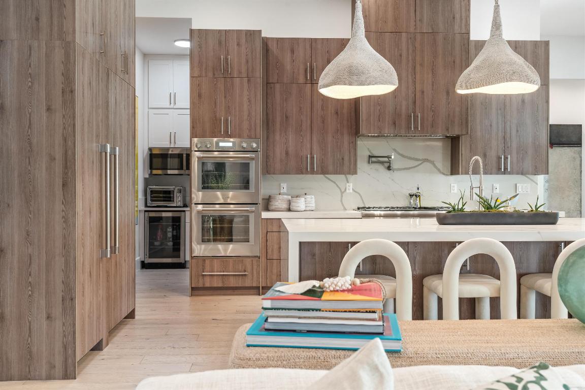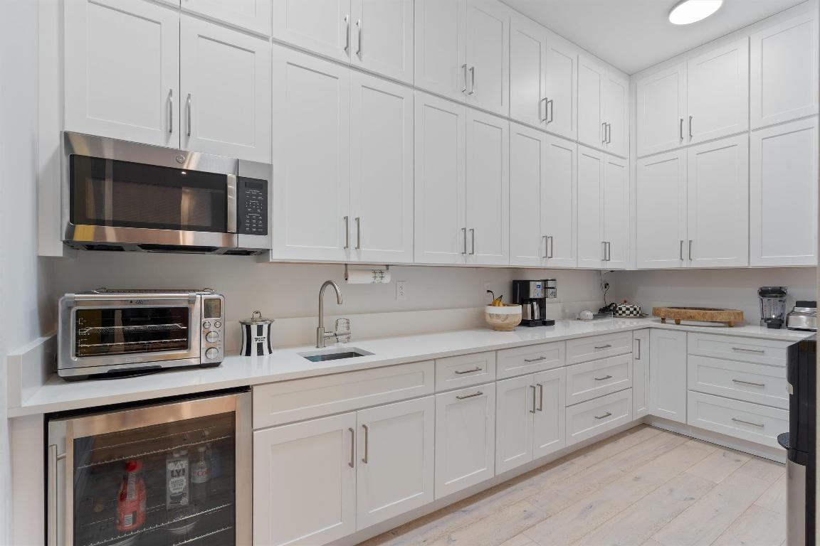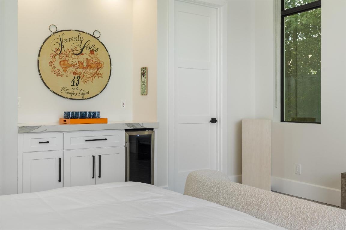 closets. The owner has added her carefully curated, sophisticated flair to every breathtaking corner of this spectacular home, ready for entertaining. The spacious living room features a 9-foot, happy-hour-ready wet bar. The chef's kitchen boasts a giant walk-in pantry, island with plenty of seating, serving buffet, and dining area. There are 8 refrigerators, a state-of-the-art media room offers the added flexibility of quickly functioning as a bedroom if needed. Two oversized garages with air-conditioned storage have space for three cars. A vast circular driveway and a covered entry make arriving home a pleasure. A handy mudroom is conveniently located right off the laundry room, accessible directly from the garage for ultimate convenience. A quiet, private office with a closet provides a designated space to work and study and serves as an additional bedroom with a full bathroom just steps away. Despite the home's sprawling size, energy costs stay in-check with environmentally friendly natural gas and Thermador appliances, hurricane impact glass and generator so you are always safe and never left in the dark.